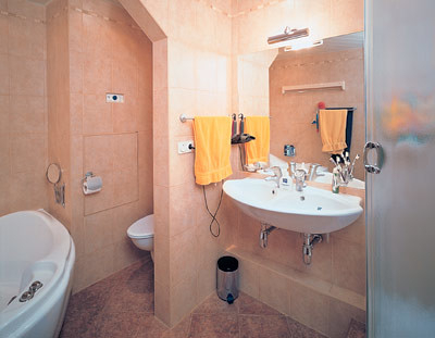 Новая просторная ванная комната вместила и душевую кабину, и угловую ванну, и унитаз, и умывальник с двумя резервуарами