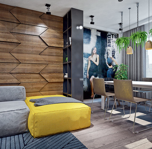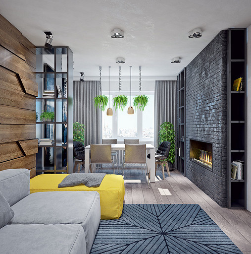 Квартиру с типовой планировкой, где большинство стен несущие, функционально улучшили. Дизайнеры «подправили» архитектуру, условно разделив большую комнату на гостиную и столовую.
