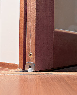Легкие раздвижные двери гостиной подвешены на штанге и перемещаются на роликах, а снизу их движение направляют миниатюрные пластиковые гребни