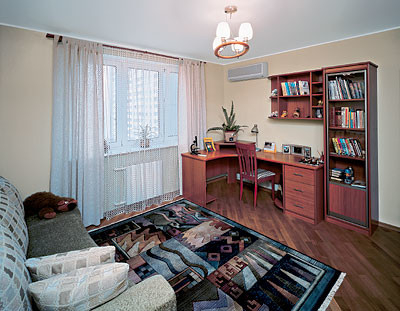 В комнате ребенка даже линии укладки паркета направлены в сторону рабочего стола. Книжный шкаф- уже довольно редкий элемент современного кабинета
