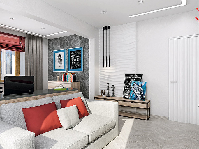 Дизайн-проект двухкомнатной квартиры общей площадью 65,3 м²