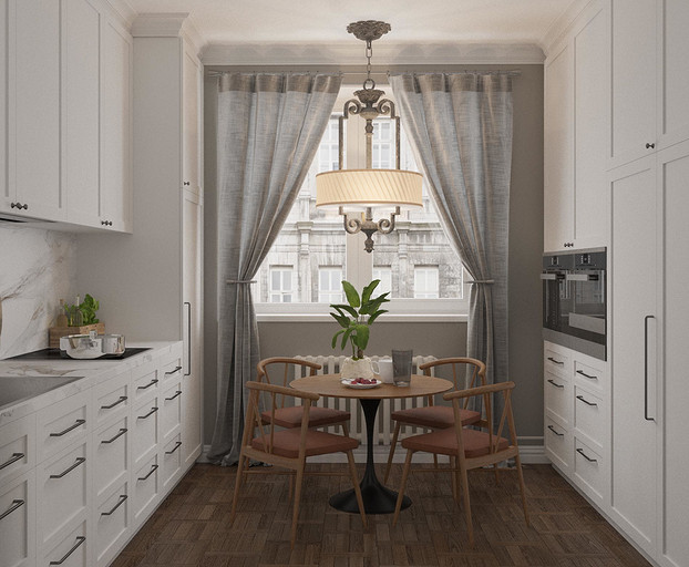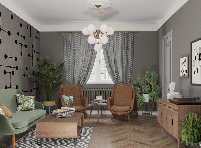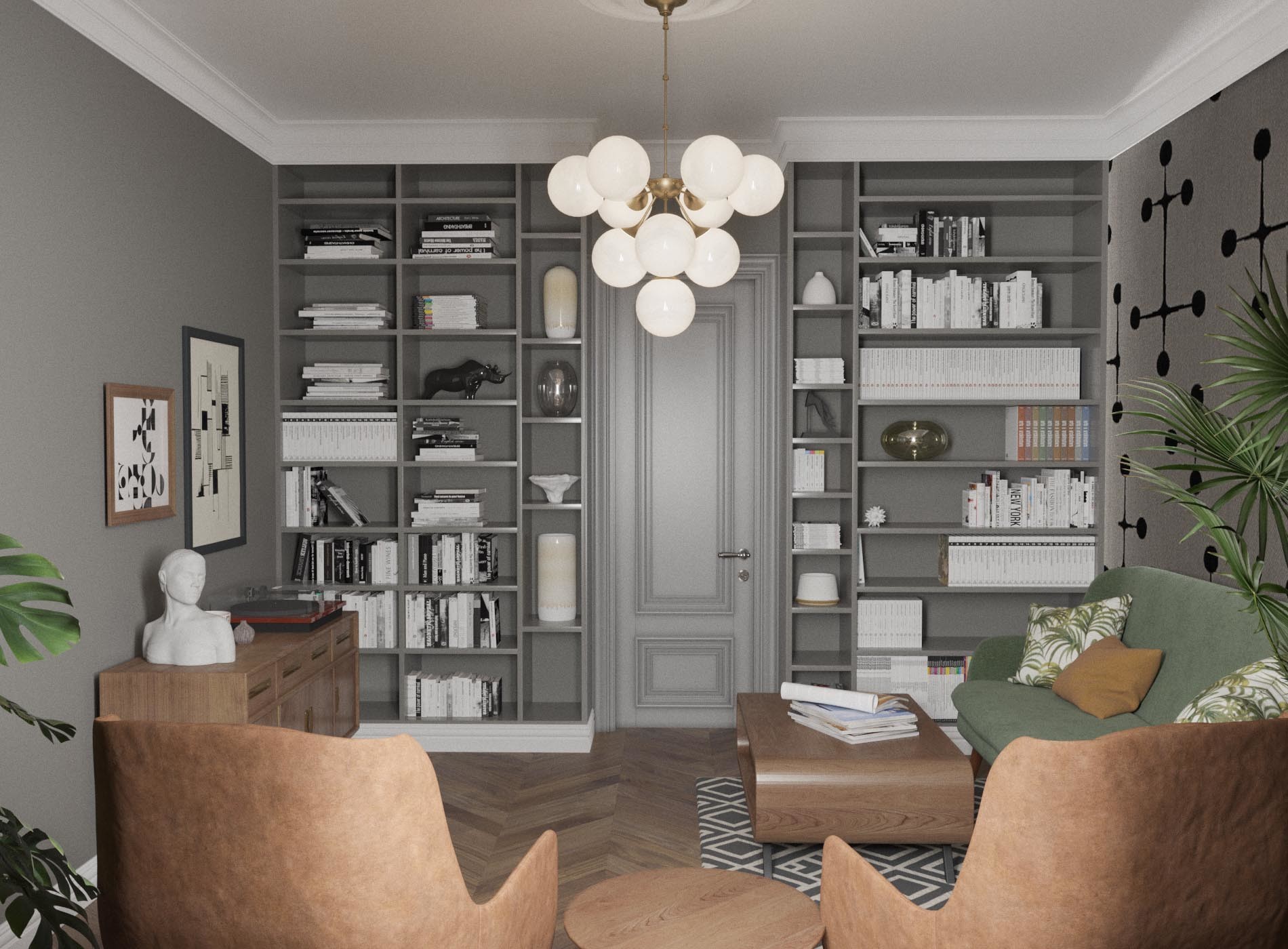 Трёхкомнатная квартира предназначена для двух поколений семьи. Интерьер отражает атмосферу старомосковской квартиры с лёгкой стилизацией под поздние советские годы и применением серо-белой цветовой гаммы.