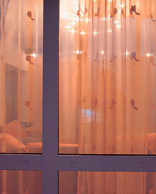 Летним вечером из зимнего сада, сквозь новые, со стеклянными полотнами, двери лоджии и прозрачные шторы, выполненные по эскизам Дмитрия Федорова, гостиная выглядит особенно уютно. А днем здесь всегда много света