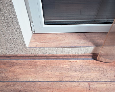 Порог лоджии отделали ламинатом, а ее стены- деревянными панелями