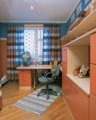 Активный цвет детской мебели уравновесили такими же