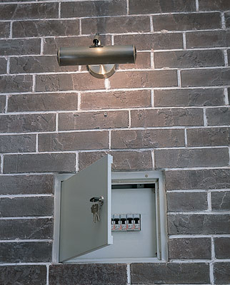 В толще перегородки, ограничивающей вентиляционный короб, смонтировали электрощит,