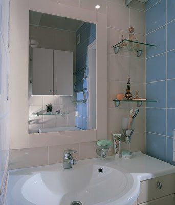 со светло-синим кафелем