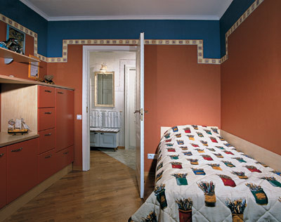 Обои контрастных цветов разделили палевой лентой бордюра