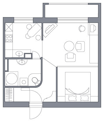 Четыре варианта перепланировки однокомнатной квартиры общей площадью 38,9 м2 в доме серии