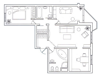 Хозяева этой квартиры- молодая супружеская пара, ведущая активный образ жизни и любящая принимать гостей. Стилистика интерьера вполне современна, но лишена нарочитости и агрессивности. Подобную обстановку предпочитают преуспевающие представители интеллигенции (врачи, ученые, писатели, журналисты, художники). Нередко эти люди работают дома, отсюда необходимость иметь удобный просторный кабинет. Облик жилища определяют большие светлые помещения, не загроможденные мебелью. "Ничего лишнего"- вот, пожалуй, как можно сформулировать девиз этого проекта. Открытые пространства, четкое зонирование, удобная современная мебель, а также теплые тона стен и солнечный цвет паркета придают жилищу уют и изящество.