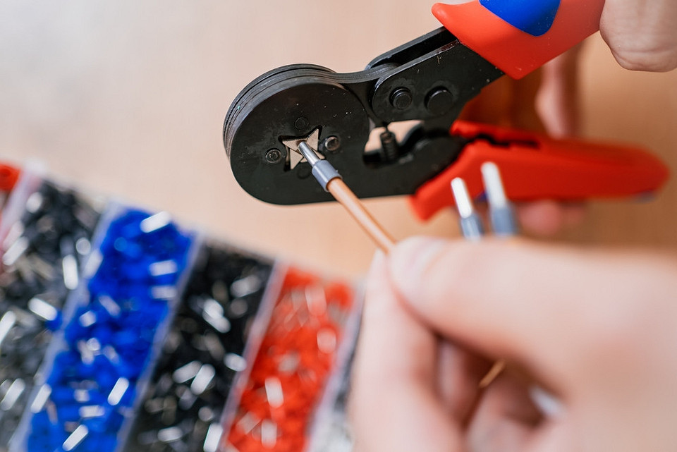Гильзы — полые трубки, которые делают из разных металлов. В оба конца заводят очищенные от изоляции жилы, затем обжимают трубку пресс-клещами, губки которых подобраны по ее диаметру. Металл жил и оболочки становится единым проводником, который практически невозможно сломать или разорвать. Такое соединение рассчитано на напряжение до 10 Вт.