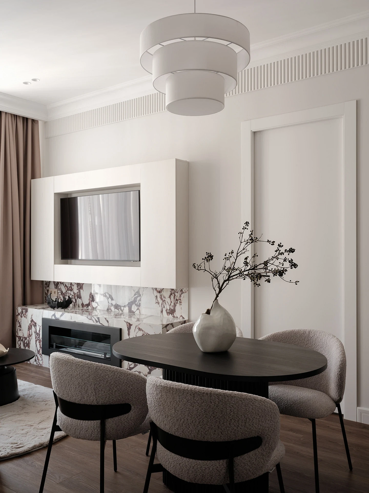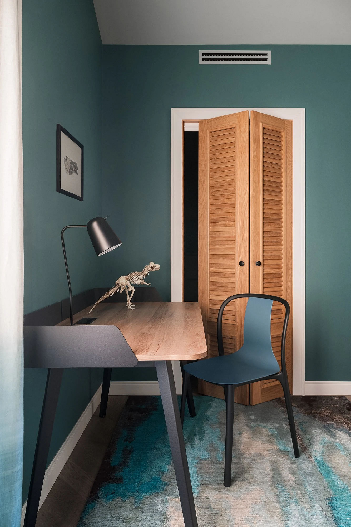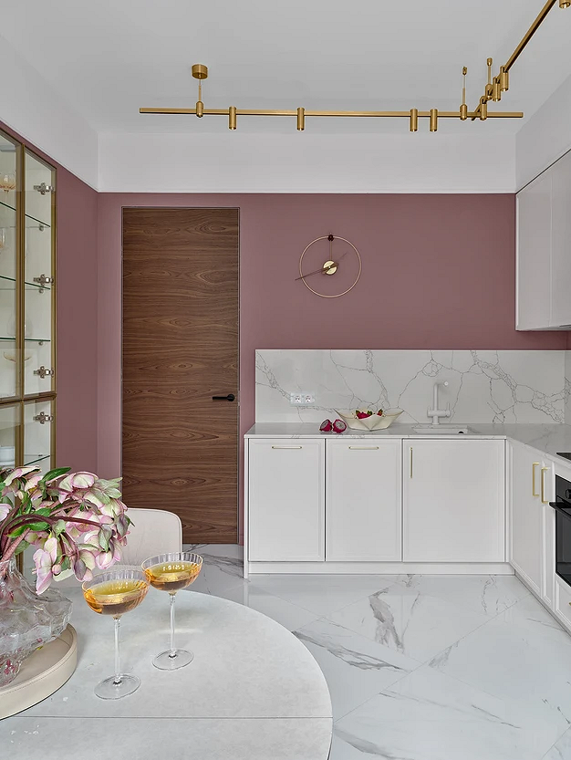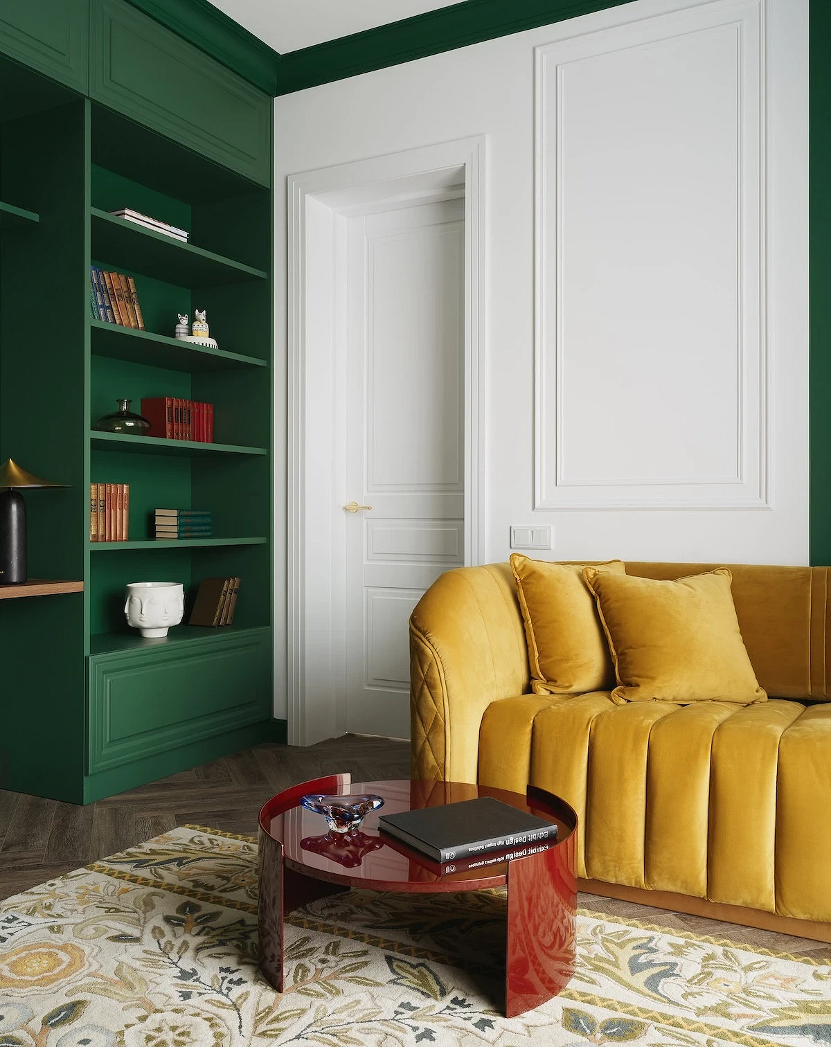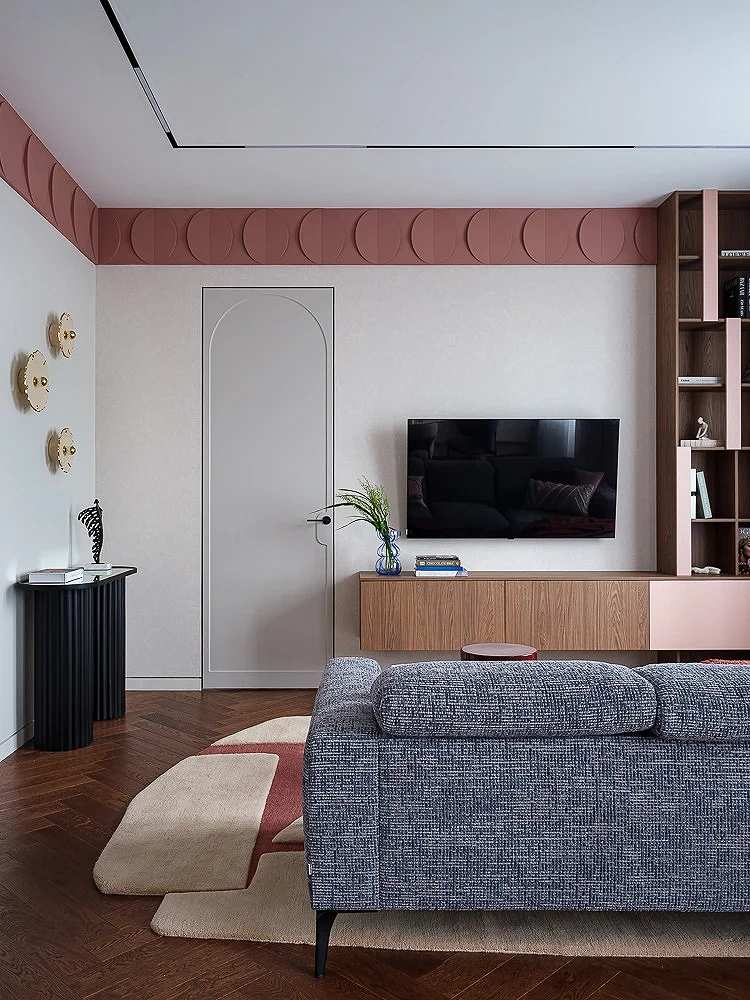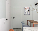 Двери, окрашенные в цвет стен, — один из самых практичных и универсальных трендов. Полотна не выделяются, не дробят поверхность на фрагменты и делают интерьер более цельным. Решение особенно актуально для небольших пространств и длинных узких коридоров.