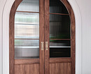 - Стекло — идеально для визуального расширения пространства и помещений с недостатком естественного света. Чаще всего используют закаленное или триплекс-стекло — обычное, матовое, рифленое. Прозрачные двери требуют аккуратного обращения и регулярного ухода, так как стекло — достаточно маркий материал.