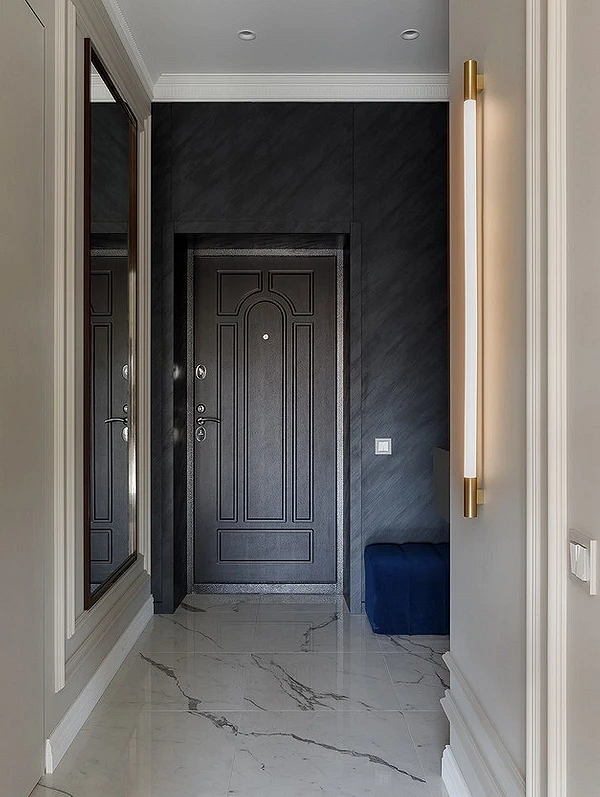 При оформлении интерьера нельзя забывать про входную дверь. Она формирует первое впечатление о доме и задает тон всей прихожей.