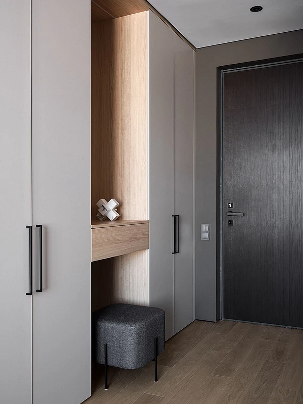 Фурнитуру в 2026 году стремятся сделать максимально незаметной. В тренде скрытые петли, магнитные замки, тонкие ручки простой формы или вовсе системы push-to-open. Отсутствие заметных акцентных деталей делает дверь частью общего фона — это актуально и для скрытых, и для стандартных моделей.
