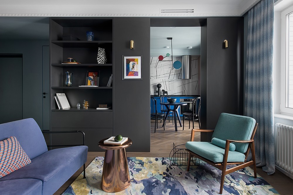 - Необходимо объединить две соседние комнаты в единое помещение, но при этом сохранить зонирование.