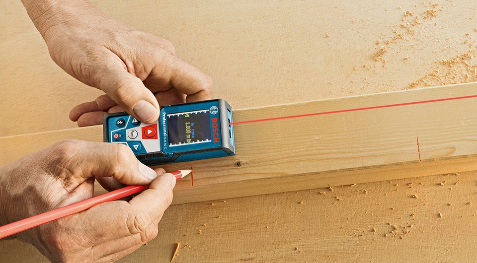 Электронные дальномеры куда удобнее металлических мерных лент. Достаточно направить измеритель на нужную точку поверхности, нажать на кнопку — и вы получите искомую величину с точностью до миллиметра. Соблазнительная лёгкость! Кроме того, электронные устройства, как правило, могут измерять большие длины, до 40–50 м, а профессиональные модели — до 250 м. При этом стоимость таких дальномеров обычно не превышает 4–5 тыс. руб., а недорогие модели можно найти в продаже за 2–3 тыс. руб.