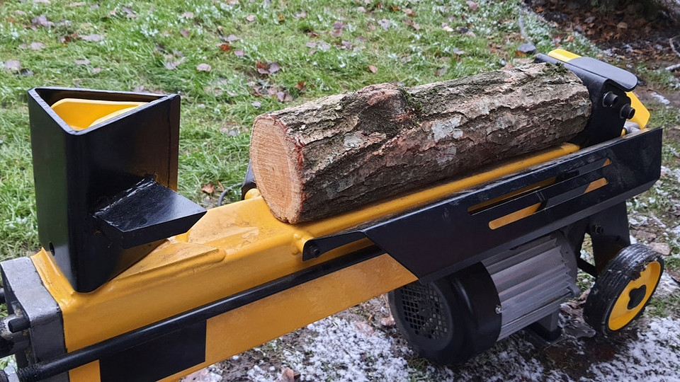 Производительный гидравлический дровокол с электрическим двигателем. Хотя заявленная мощность — всего 4 тонны, по отзывам покупателей он может развивать большее усилие.