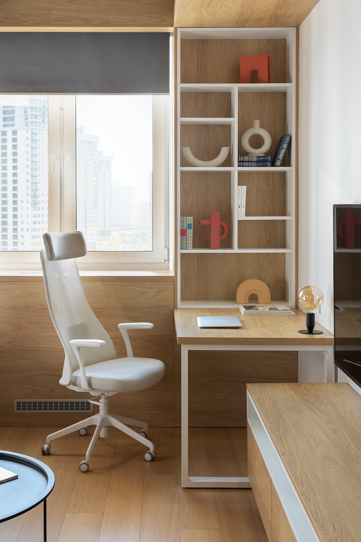 Если подоконное пространство позволяет, можно сделать его частью мебели. Это будет полноразмерный стол или только продолжение столешницы. Такое решение уместно на кухне, в рабочем кабинете или в детской комнате. Лучше выбирать оттенок в тон мебели. На кухне будет хорошо смотреться изделие, подобранное в тон столешнице гарнитура.