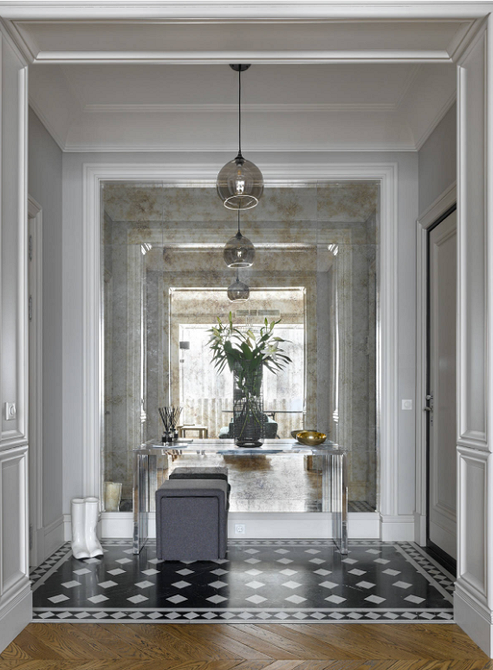 В основном, прихожая — это темная и чаще всего небольшая по площади зона в квартире. Отсутствие окон и специфическая форма помещения требуют особой изобретательности при планировании искусственного света. Сюда же добавляется необходимость организовать систему хранения и место с зеркалом, где можно привести себя в порядок и оценить свой вид перед выходом из дома.