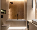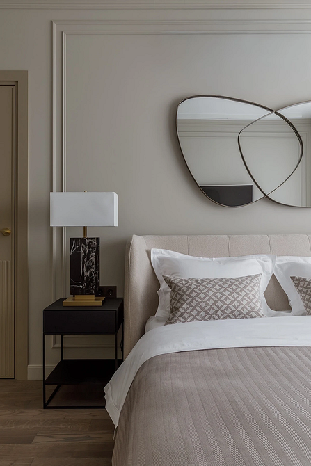В спальне свет должен помогать настроиться на отдых, поэтому здесь лучше отказаться от чрезмерно ярких верхних источников в пользу рассеянного свечения. Идеальный вариант — сочетание «парящего» потолка и прикроватных бра либо аккуратных подвесов. Важно, чтобы у кровати был предусмотрен отдельный выключатель. Тогда не придется вставать перед сном.
