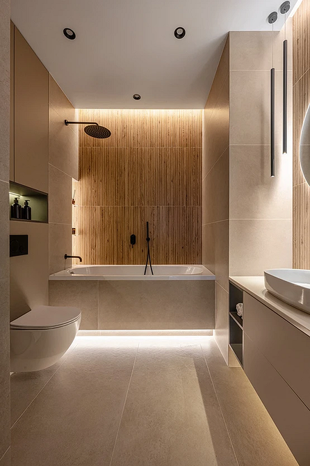 Тот самый «магический» свет, источник которого не виден. Обычно это светодиодные ленты, спрятанные в специальные ниши или за карнизы под потолком. Такой прием создает иллюзию «парящего» потолка и визуально раздвигает границы стен, делая комнату просторнее.