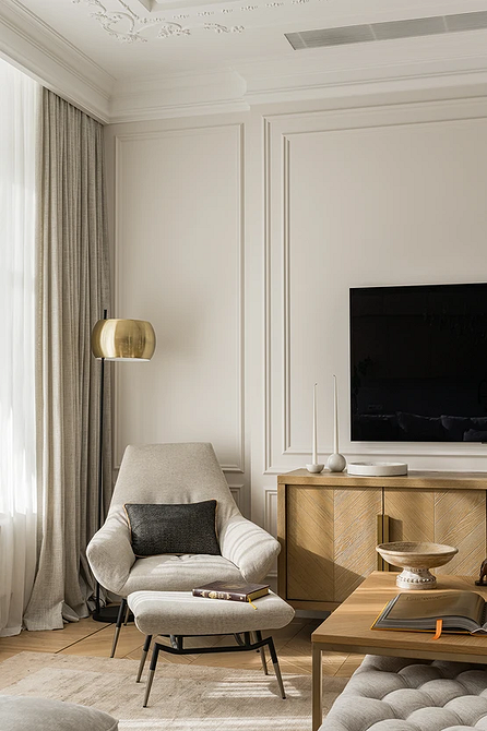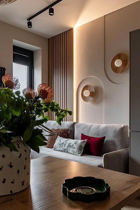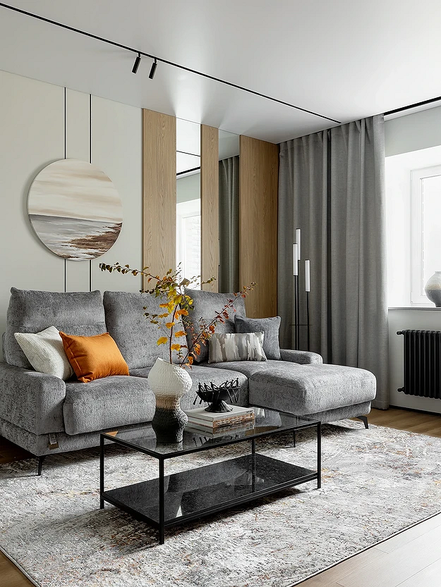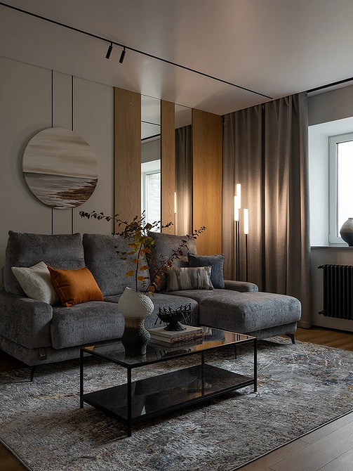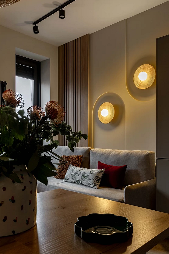 Многие незаслуженно забывают про стены, а ведь свет на уровне глаз — самый комфортный для человека. Он не давит и создает естественные тени, которые делают лица свежее, а обстановку — уютнее. Настенные приборы идеально дополняют освещение гостиной без люстры, создавая тот самый «вечерний свет», при котором приятно отдыхать после работы.
