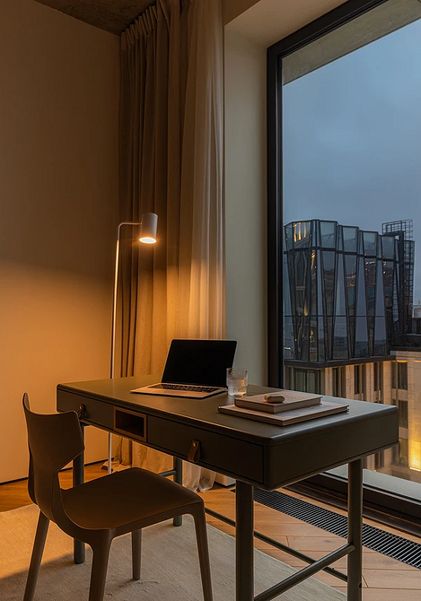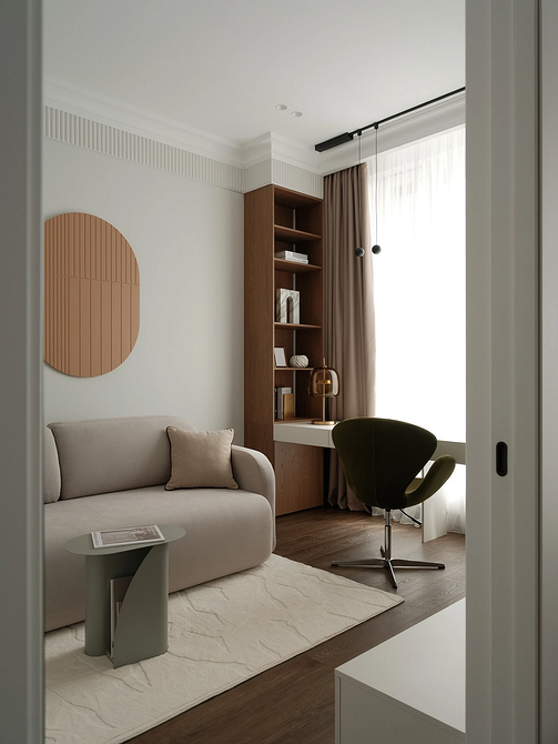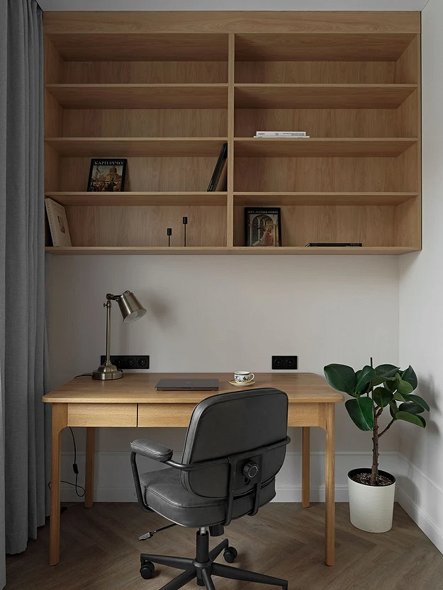 Если в кабинете есть зона отдыха или библиотека, добавьте туда торшер или бра с более теплым светом. Это поможет психологически переключиться с рабочих задач на чтение или раздумья. Сочетание разных типов светильников позволит работать с комфортом в любое время суток, не перенапрягая зрение.