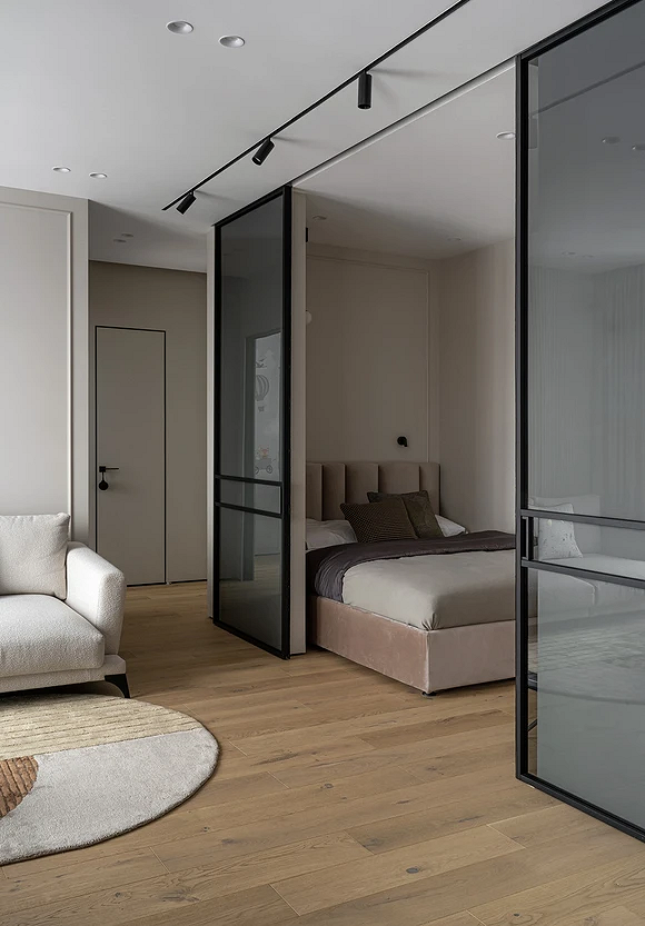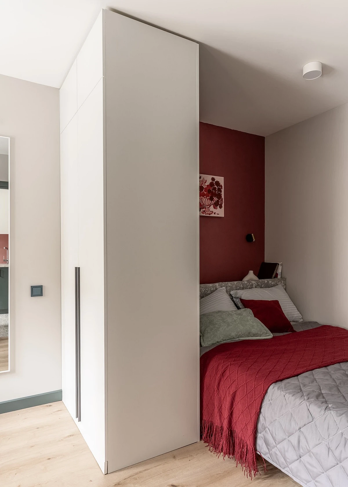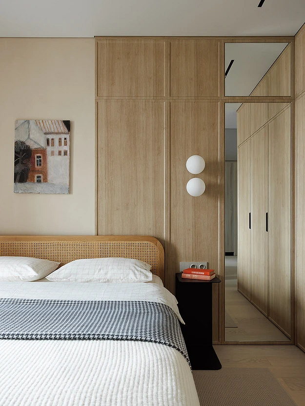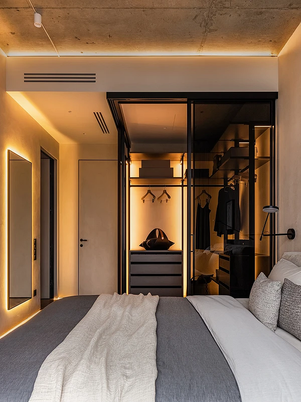 Особое внимание уделите зоне гардеробной или шкафа. Свет должен быть функциональным и достаточно ярким, чтобы вы четко видели цвета одежды и находили нужное. Встроенные в потолок или внутрь шкафа светильники решат эту задачу лучше всего. Также помните о цветовой температуре: для спальни лучше всего подходит самый теплый свет.