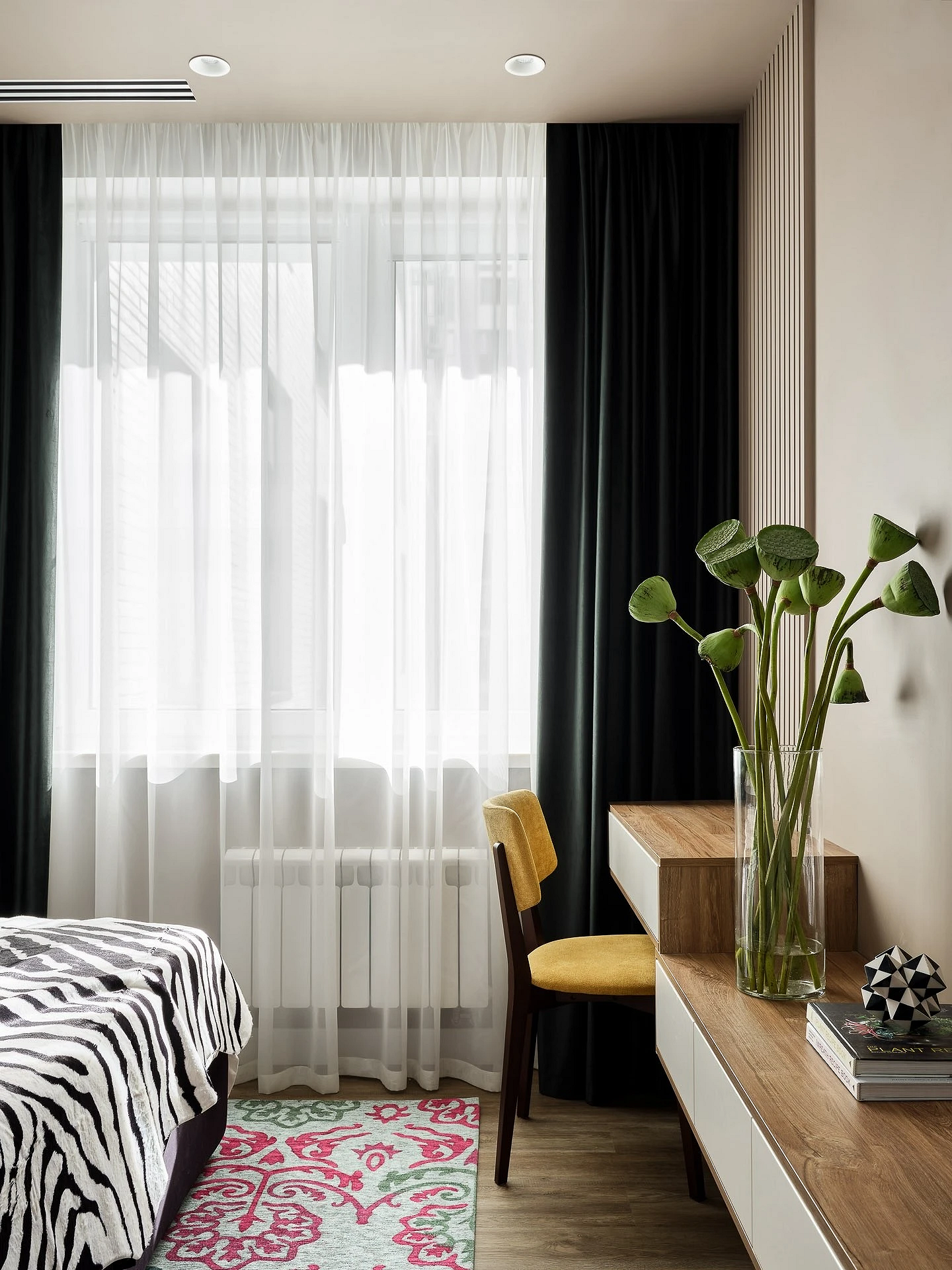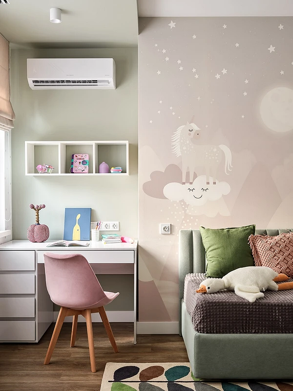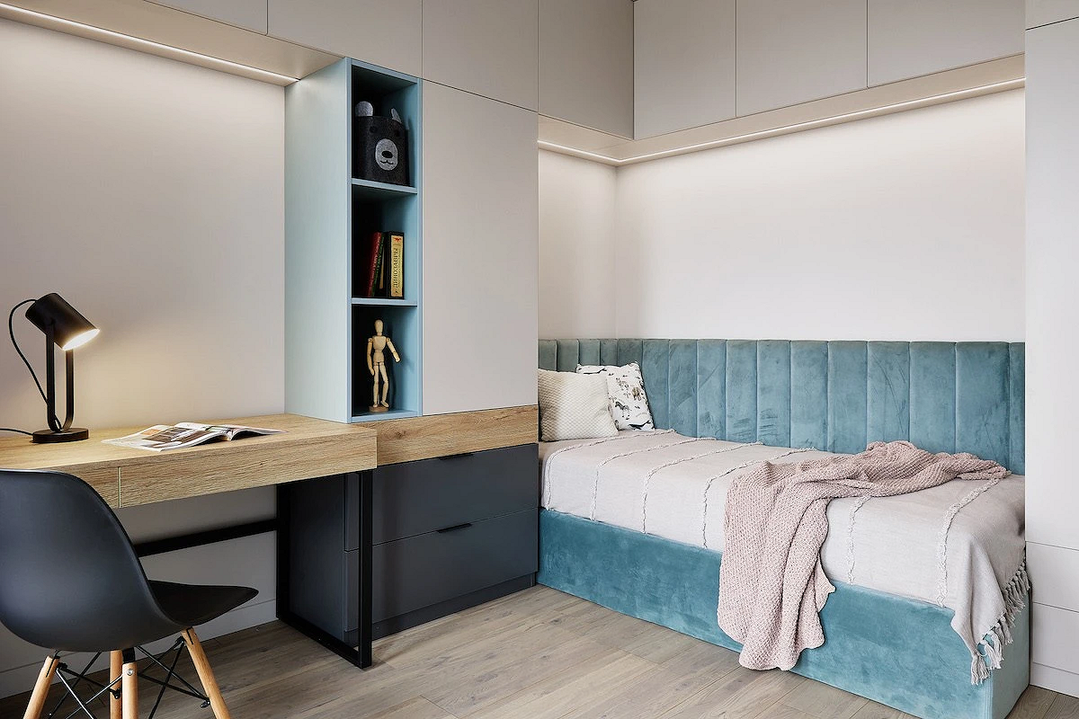 В рабочей зоне обязательна настольная лампа с регулировкой наклона. Для вечернего времени предусмотрите подсветку с регулировкой яркости или ночник. Дети часто боятся темноты, поэтому мягкий свет у кровати поможет им чувствовать себя в безопасности. Выбирайте надежные модели, которые невозможно случайно разбить во время активных игр или обжечься о накалившуюся лампочку.