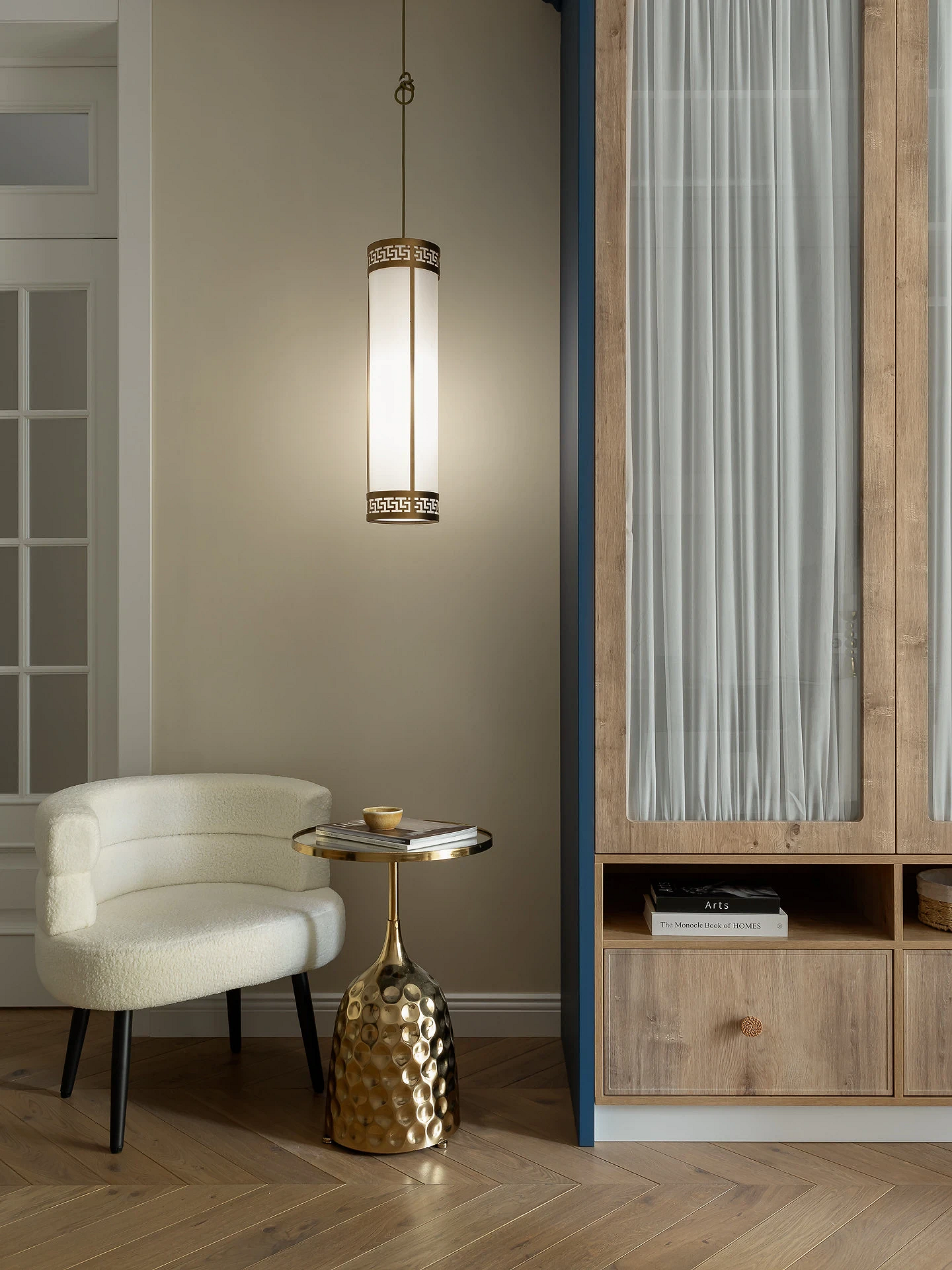 В случае с подвесами важен дизайн. Подбирайте плафоны под общий стиль интерьера. Это могут быть модели из матового стекла, металла, бумаги и даже керамики. Если светильников несколько, повесьте их на разной высоте — это добавит интерьеру динамики.