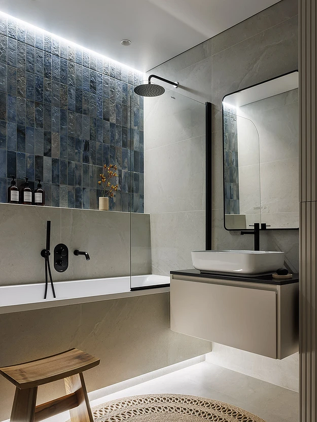 Применять скрытую подсветку можно буквально везде: по периметру потолка или пола, под кухонными шкафами, за изголовьем кровати. Она дает в меру яркий свет, который не бьет в глаза. Только не забудьте заранее предусмотреть место для блоков питания — они должны быть спрятаны, но при этом к ним нужен легкий доступ на случай замены.