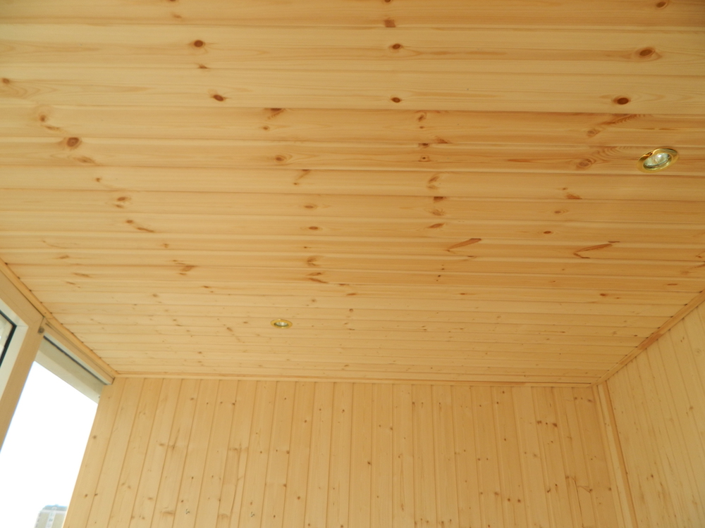 Такая отделка прослужит многие годы, однако потребует монтажа обрешётки (то есть «украдёт» до 8 см от ширины и длины помещения). Под воздействием света деревянная обшивка может «загореть» и приобрести насыщенный буро-оранжевый оттенок, поэтому её обязательно надо покрыть составом с УФ-фильтром. Современные краски и лазури способны придать вагонке необычный и стильный облик, выровнять тон и замаскировать небольшие дефекты. Но покупать надо только высокосортный материал (сорт, «А», «Экстра», «Селект)». При этом высмолы требуется вычистить ножом и зашпаклевать.