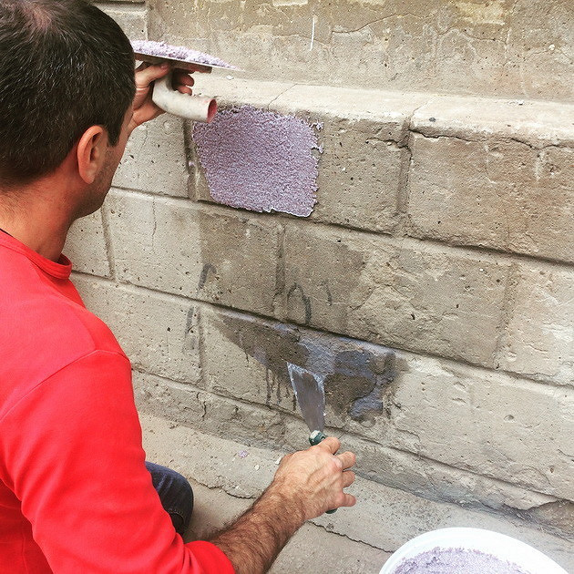 При нанесении крупнозернистого материала разрешается пренебречь выравниванием небольших дефектов, их закроет штукатурка. Далее наносится грунтовка глубокого проникновения. Акриловое связующее прозрачно, поэтому, если основание имеет темный или яркий цвет, нужно выбрать укрывистую грунтовку нейтрального тона.