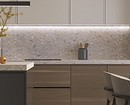 Венецианский узор органично смотрится и в качестве напольного покрытия. Интересный эффект дает сочетание мозаичного пола с однотонной мебелью и отделкой. А если хочется больше яркости, в пару к терраццо на полу можно сделать такой же фартук.