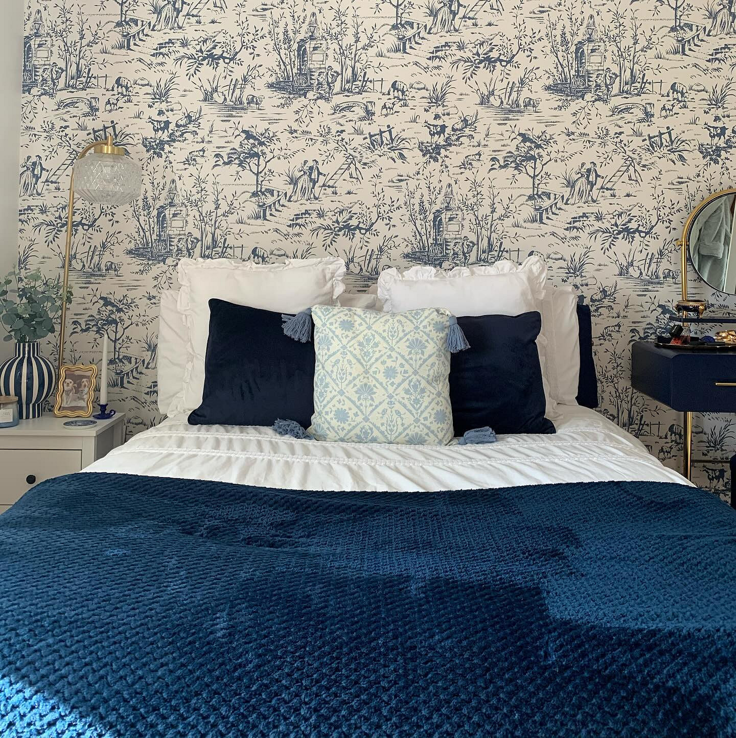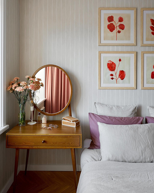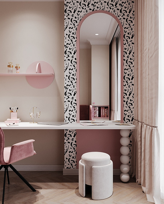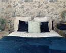 Чаще всего цветные полотна клеят за изголовьем кровати, в нишах, в зоне с рабочим местом или туалетным столиком. Комбинируют с нейтральными отделкой и мебелью. А вот декор и текстиль тоже могут быть яркими.