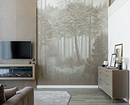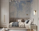 Чтобы не перегружать интерьер, дизайнеры используют этот формат на одной стене или даже только на ее части — в формате панно. Рисунок выбирают в спокойных оттенках, на матовой поверхности. В таком виде масштабное изображение подходит и для маленькой комнаты.