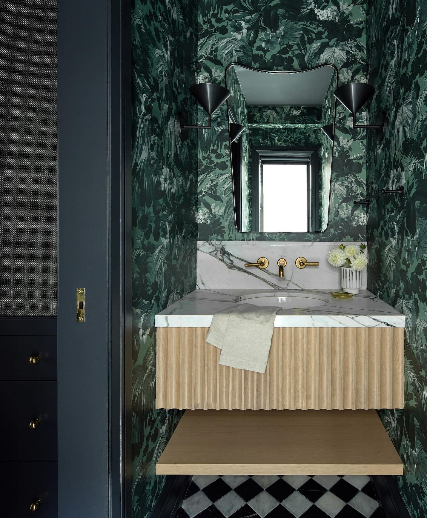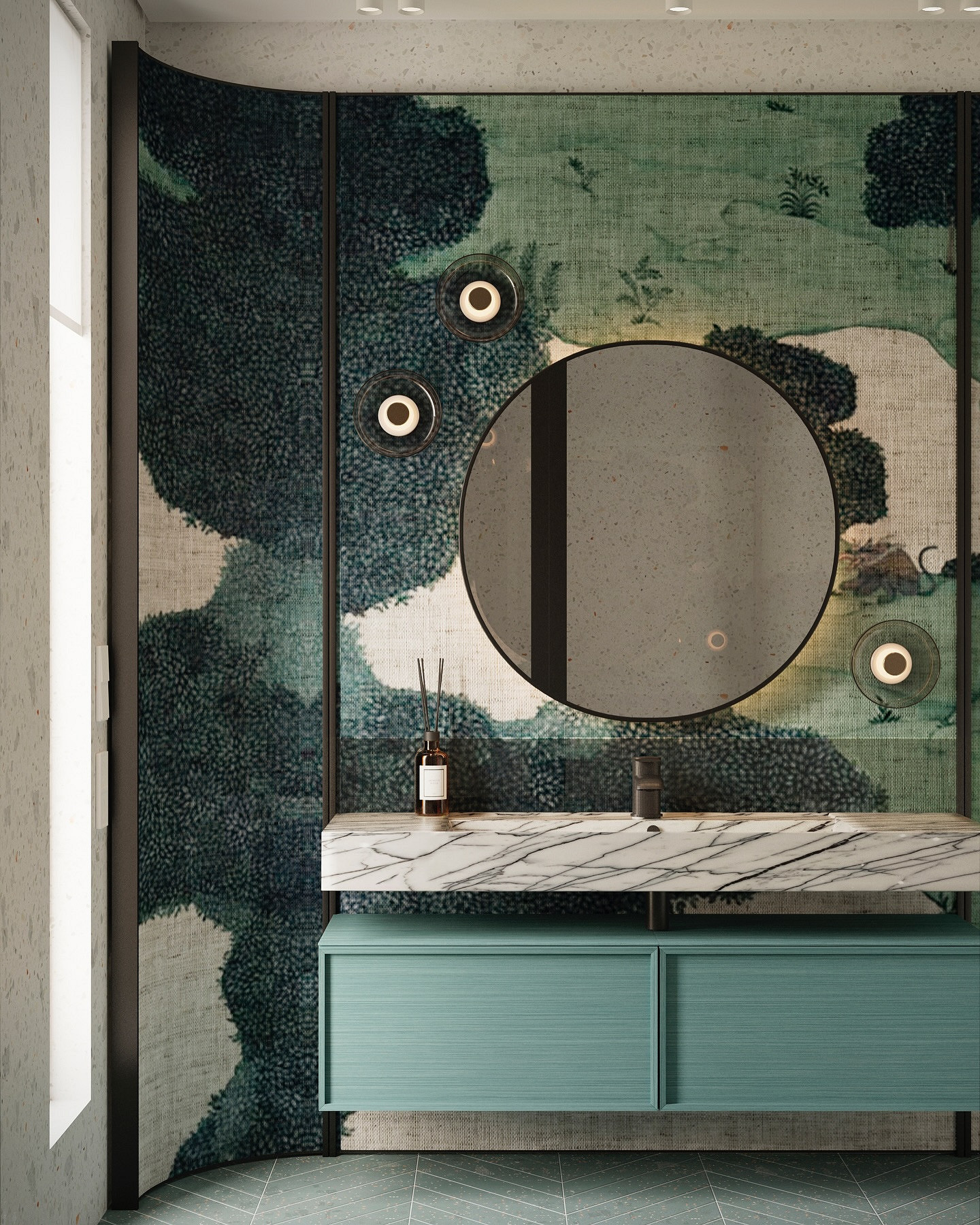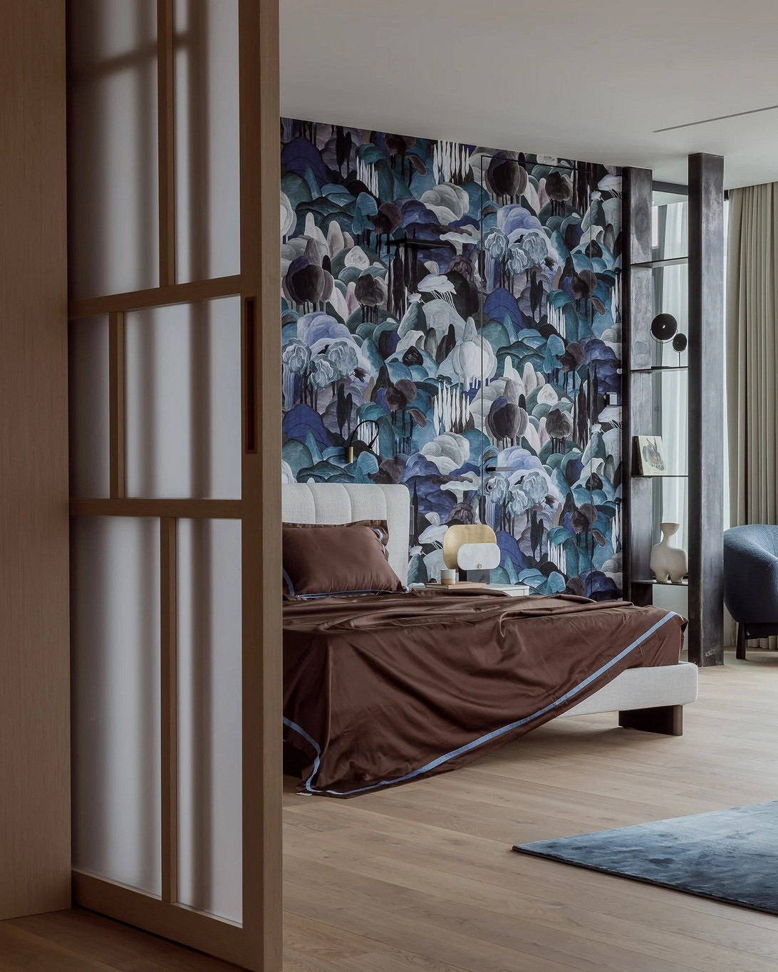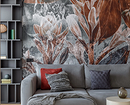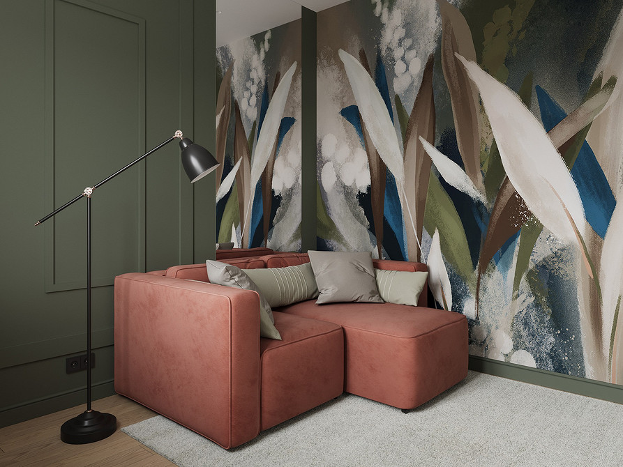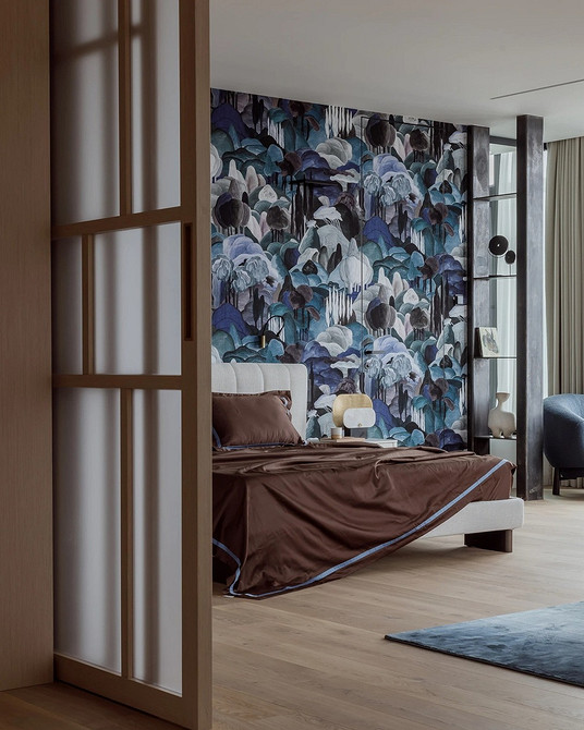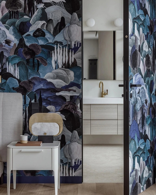 Крупные изображения уже несколько лет остаются в списке трендов дизайна настенных покрытий. Масштабные рисунки — листья, волны, акварельные разводы, архитектурные формы, абстрактные силуэты — не только акцентируют внимание на какой-либо зоне, но и часто в принципе заменяют декор.