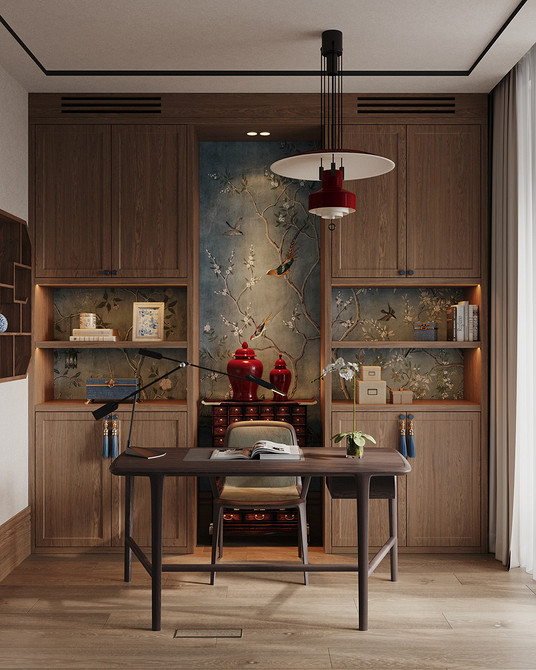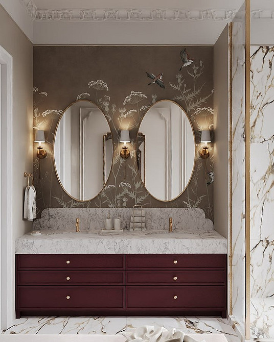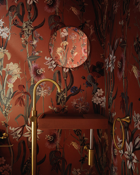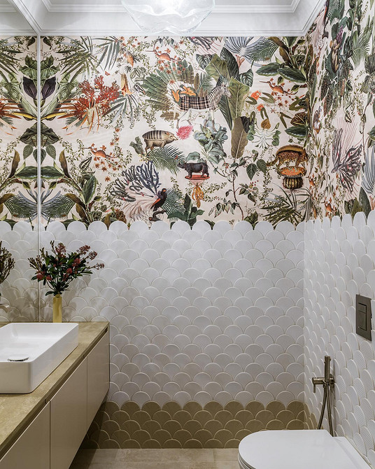 Флористические и анималистичные сюжеты органично сочетаются с деревянной мебелью и другими натуральными фактурами в интерьере: от мрамора или другого камня до льняного текстиля и керамики.