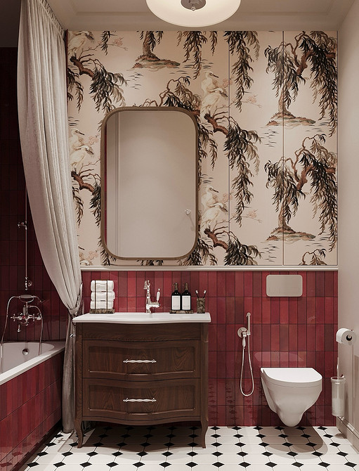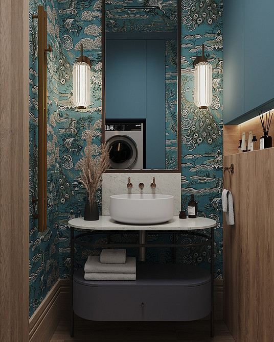 - Они же нужны для кухни, ванной комнаты и туалета. Подходят винил на флизелиновой основе, стеклообои и специальные моющиеся покрытия. Они выдерживают колебания температуры и влажности, легко очищаются и не впитывают запахи. Важно, чтобы стыки были хорошо проклеены и не находились в прямом контакте с водой.