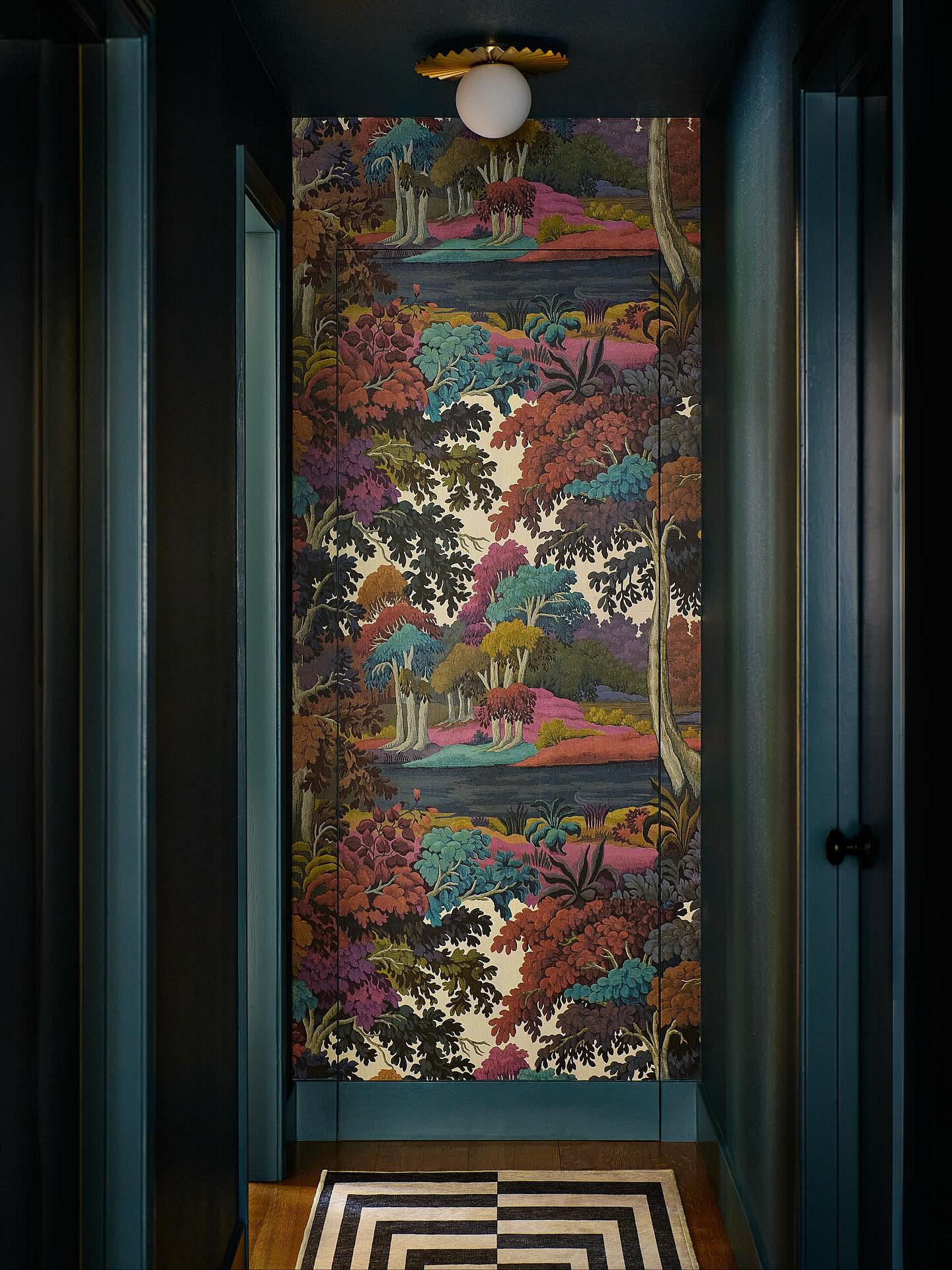 Особенно хорошо подобные обои работают в маленьких помещениях, в том числе без окон: например, в коридоре или выделенной спальне. Важно, чтобы рисунок был подходящего масштаба, не слишком броским и в меру реалистичным. Тогда перспектива будет ощущаться естественно и не появится ассоциаций с фотообоями из нулевых.