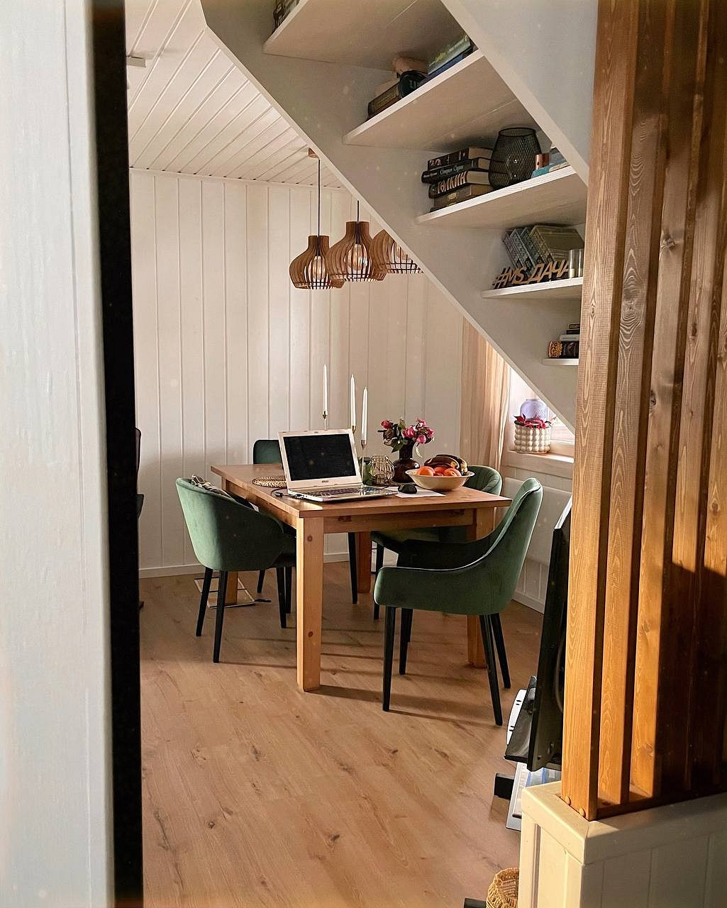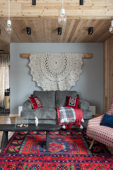 Доски на потолке — хорошая альтернатива гипсокартону и натяжным полотнам. Если монтировать на обрешетку, за ними можно скрыть коммуникации. Если потолки в комнате высокие, сохраните естественный цвет дерева или слегка затонируйте в более темный или светлый оттенок. В комнатах с низкими потолками лучше использовать окрашенное в светлый цвет дерево, чтобы визуально вытянуть пространство вверх.