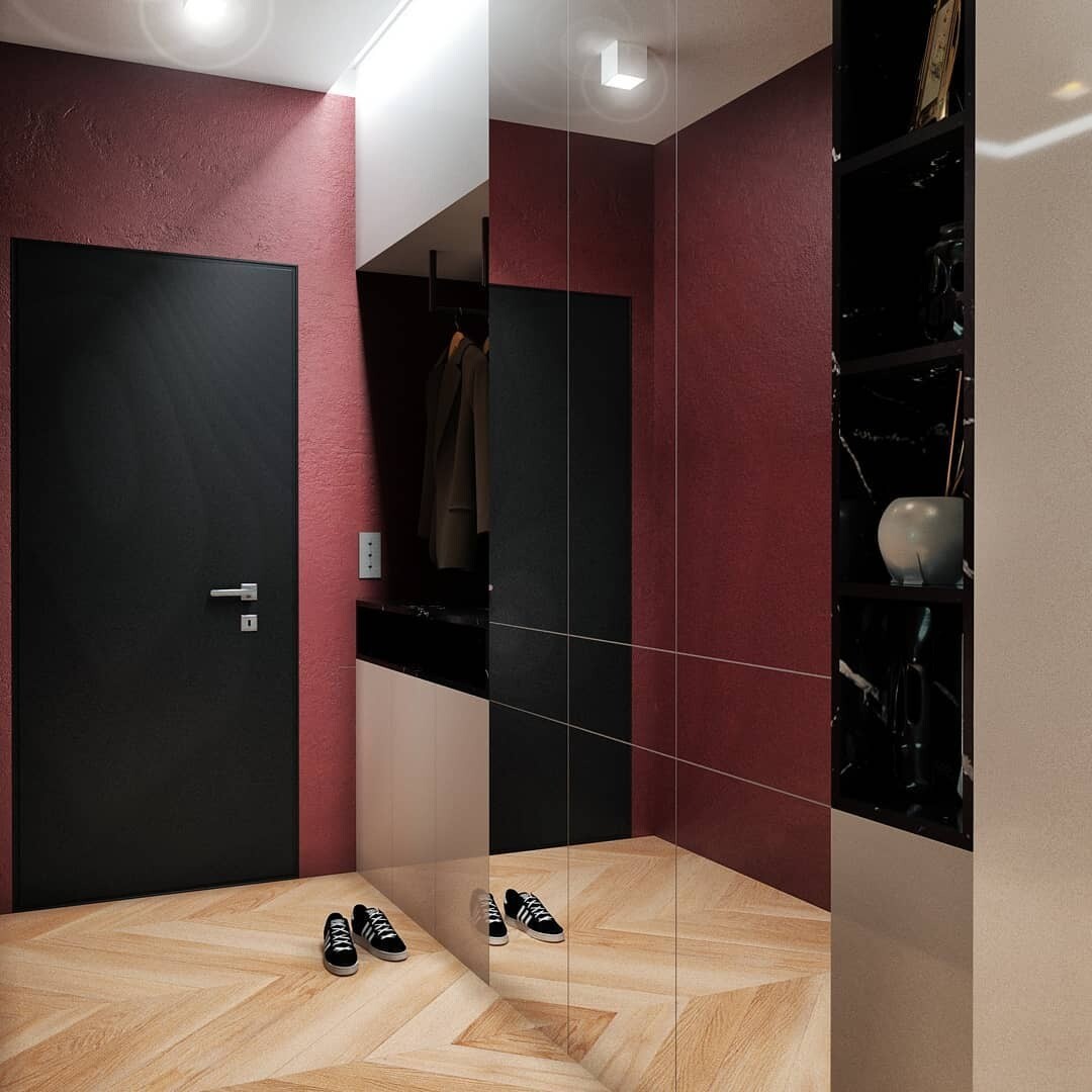 если прихожая маленькая, желательно подобрать в интерьер жидкие обои в светлых цветах: бледно-сером, бежевом, золотистом, сливочном. Жидкие обои сделают скромное по площади пространство визуально просторнее и привлекательнее, добавят света. А если вы оформляете квартиру в стиле лофт или эклектика, можно поэкспериментировать с глубокими темными оттенками.