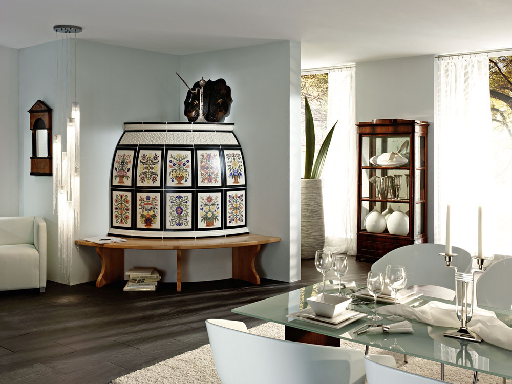 Зарубежные компании ABX, La Nordica, Enbra и другие производят печи-камины с керамической облицовкой. Разумеется, это не совсем изразцы, а скорее имитация, однако внешне они точно воспроизводят традиционные изделия, да и по свойствам мало от них отличаются. При этом большинство керамических печей-каминов не только изящно выглядят, но и обладают впечатляющим набором функций, в том числе дожигом дымовых газов, самоочисткой стекла дверцы и даже встроенным теплообменником для подключения водяного контура.