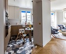 На фото — варианты зонирования двумя напольными покрытиями без порога.