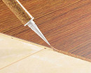 Чтобы сделать идеальную линию, подготовьте картонный или любой другой шаблон. Если на краях заготовок остались зазубрины — обработайте их. Проведите подготовительные работы — обозначьте место соединения и сделайте предварительную укладку. Проверьте, соблюдается ли ширина шва на протяжении всей линии. Она составляет 1,5 — 5 мм, в зависимости от метода, которым вы будете заделывать промежуток.