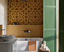 - Керамическая — производится из глины с добавками и обжигается при высоких температурах. Не такая прочная, как керамогранит, поэтому для прихожей и зон с высокой проходимостью ее используют реже. Идеальна для ванной, кухни и балкона. Главный плюс — огромный выбор дизайнов в любом стиле.