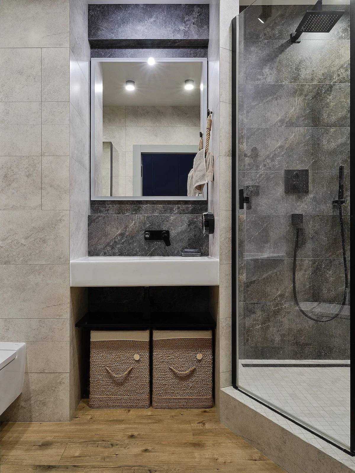 - По возможности проверяйте материал вживую. Фото и каталоги не всегда передают реальную фактуру и оттенок. Лучше посмотреть образец при разном освещении и оценить, как он будет сочетаться с мебелью и отделкой. Если покупаете онлайн, постарайтесь найти реальные фото с конкретной плиткой.