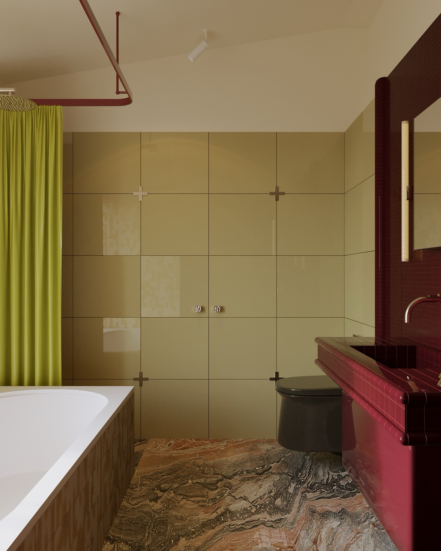 - Для ванной критически важны противоскользящие свойства материала. Лучше всего подходят матовые, слегка текстурированные поверхности.
