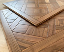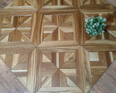 Этот тип паркета выглядит на полу как штучный, выложенный затейливым узором, однако на самом деле представляет собой большеразмерные щиты с уже выполненным на них рисунком из плашек (отсюда его второе название — щитовой).